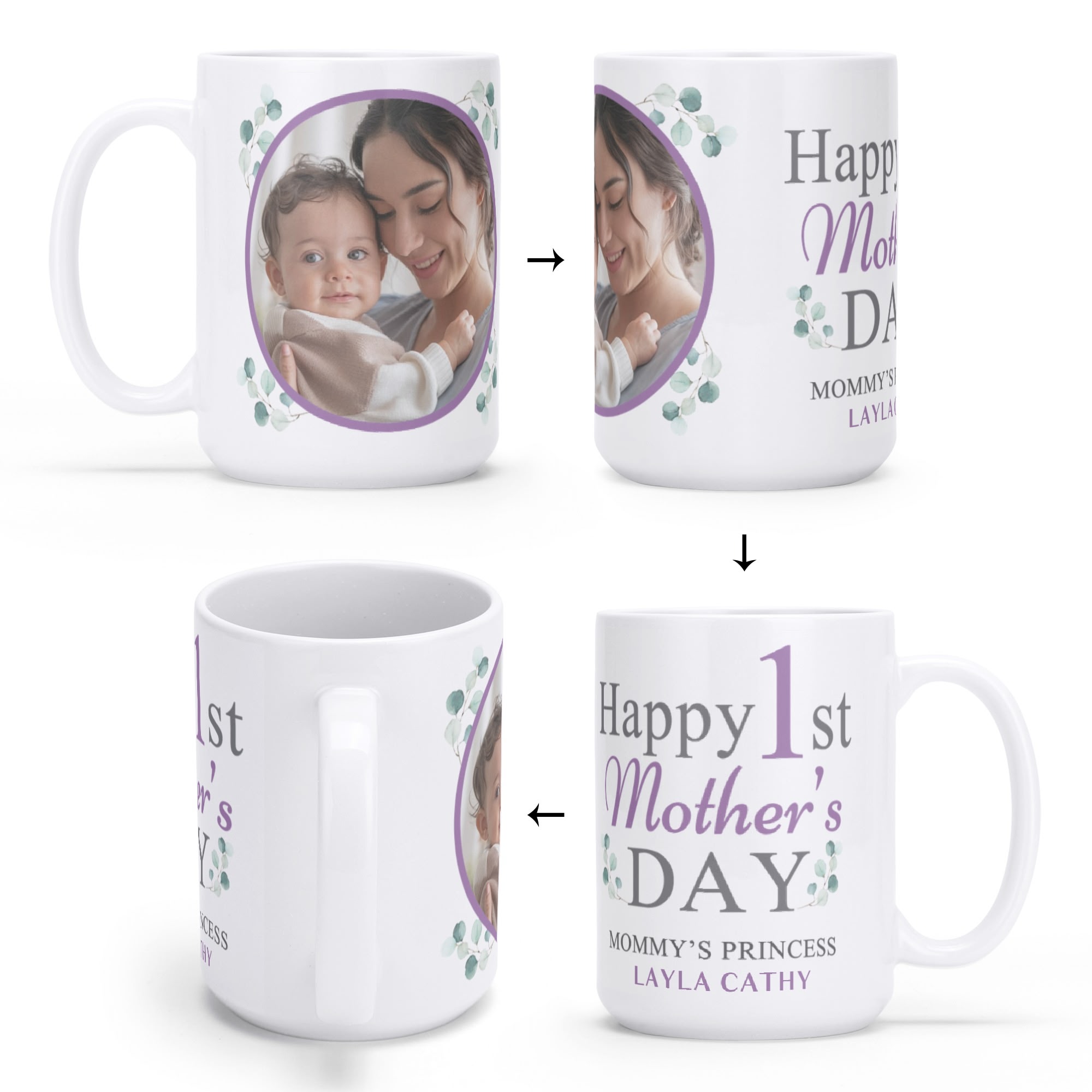 Personalized Elegant White Glossy Mug for Daily Use - 15 oz